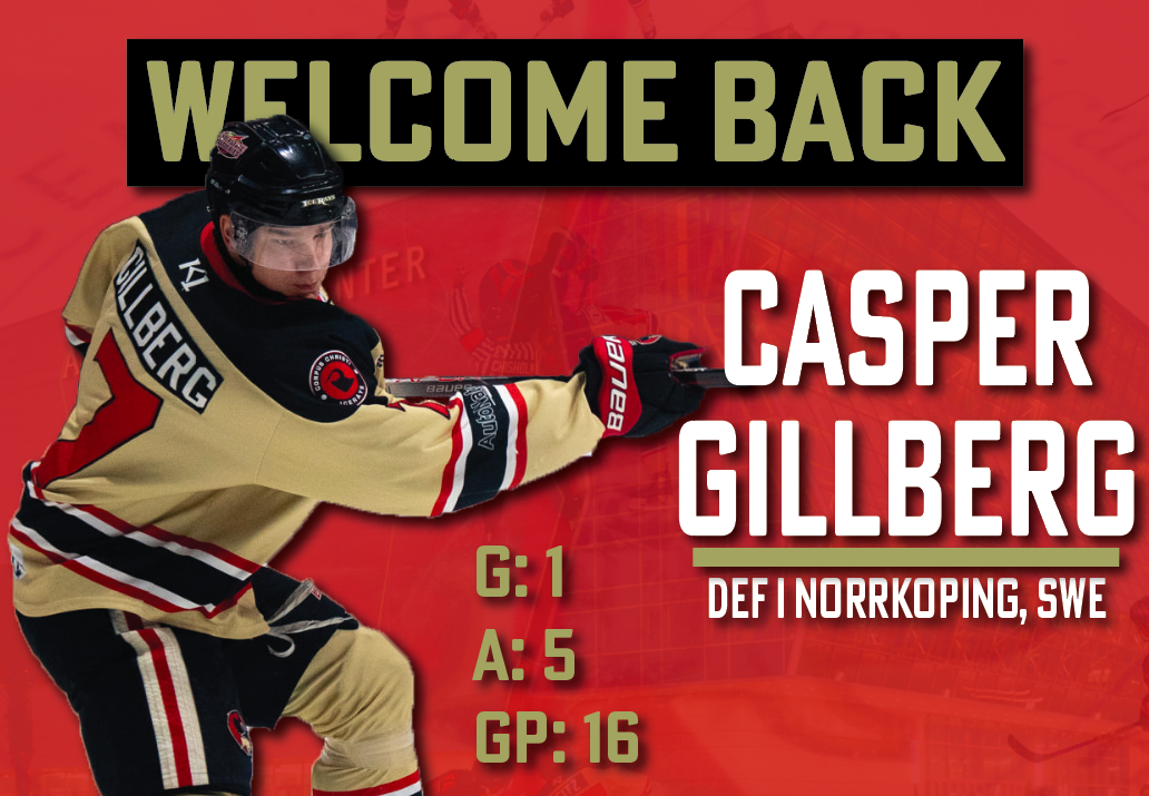 After starting the season off with Corpus Christi, defenseman Casper Gillberg returns to the IceRays this weekend. Gillberg last played for the Rays during the Thanksgiving weekend sweep of the New Mexico Ice Wolves.
