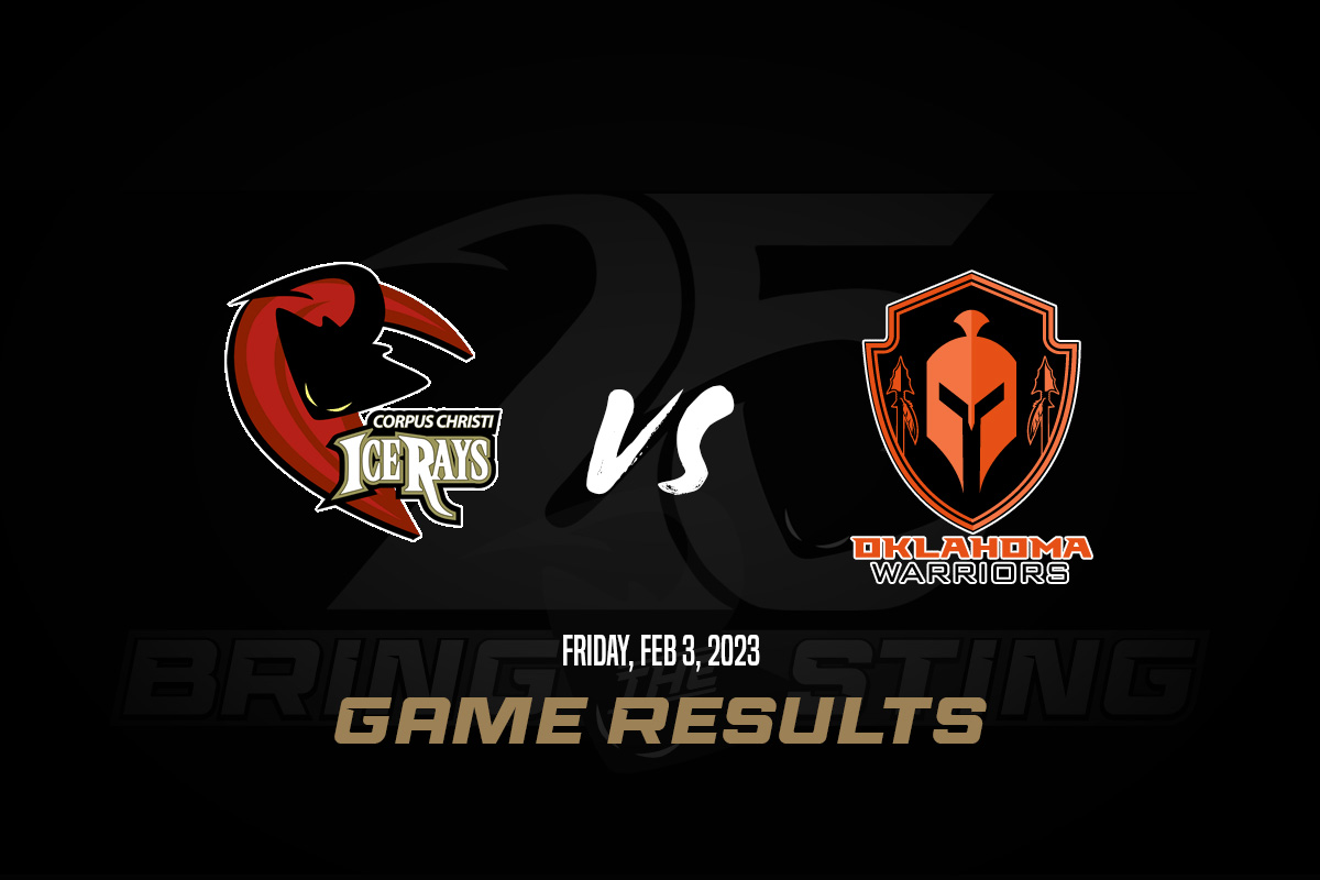 The IceRays next game is Saturday, February 4th against the Oklahoma Warriors at the American Bank Center. Puck drop is at 7:15 PM CST.