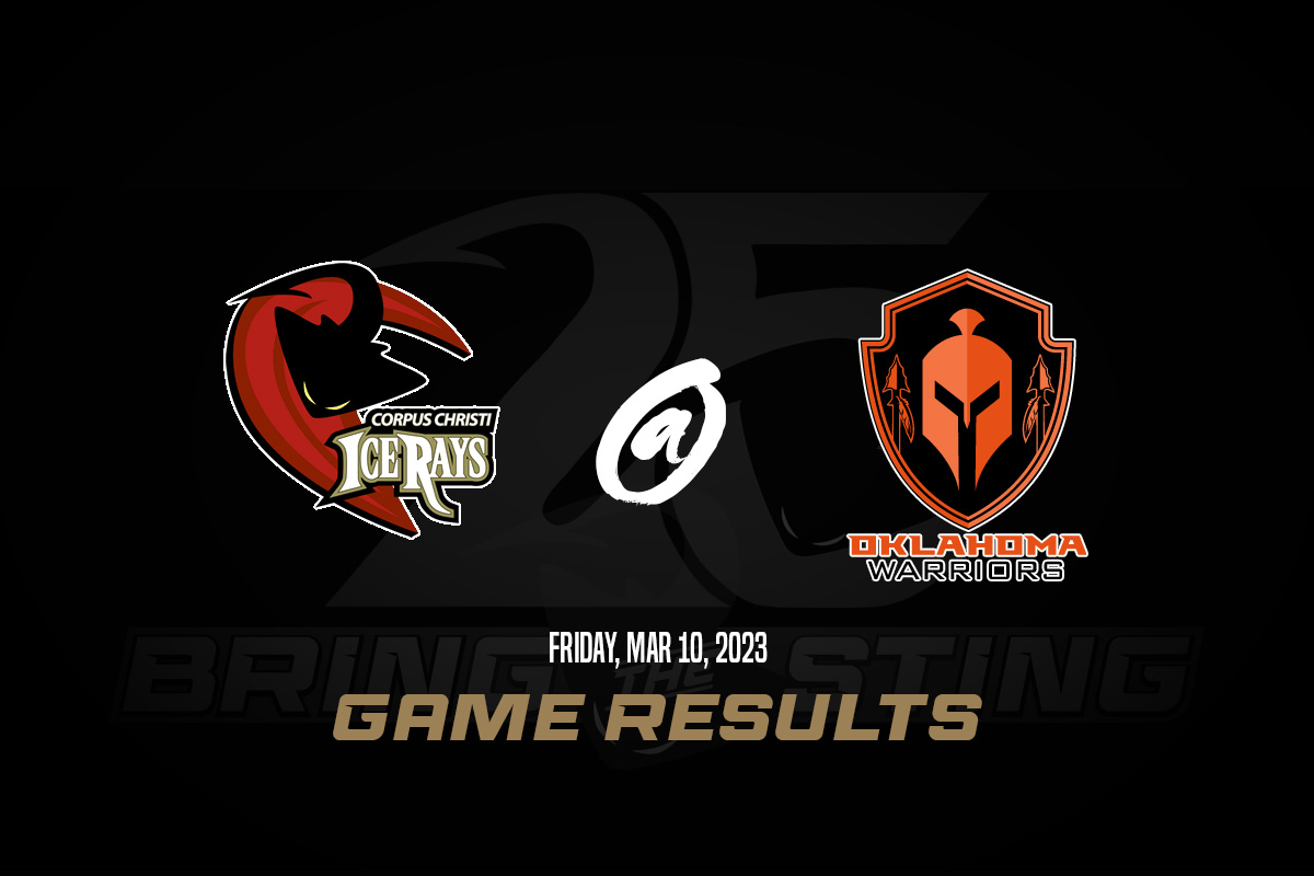 Oklahoma City, OK (March 10, 2023) – The Corpus Christi IceRays were defeated by the Oklahoma Warriors 4-2 at Blazers Ice Centre on Friday, March 10th, 2023.